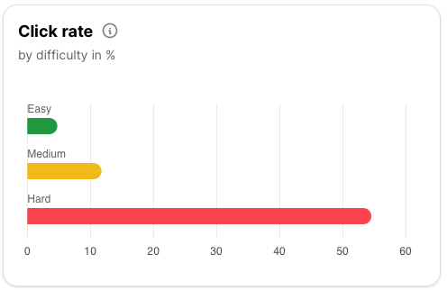 It’s launch time! You can immediately use the metrics and analytics to verify your simulation messages are being successfully delivered. You’ll see detailed metrics on overall stats, per-template, per-tactic and per-difficulty level. If your privacy agreement allows, you can even get a breakdown of each action on a per-user basis.